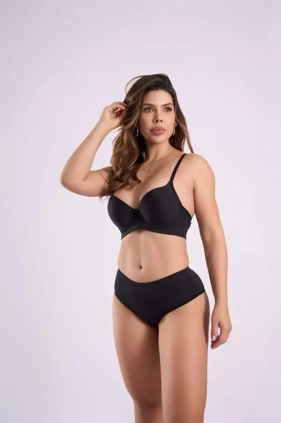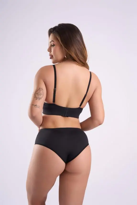 Modelo em microfibra macia, com base dupla e elástico embutido para maior firmeza. Possui alças reforçadas e modelagem que se adapta ao corpo com suavidade, oferecendo conforto e sustentação para o uso diario.